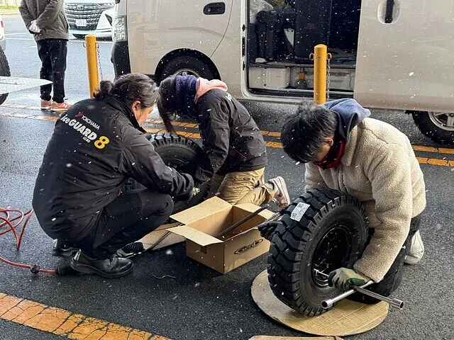 タイヤの空気充てん作業は、安全管理が非常に重要な業務です。