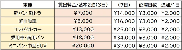 持ち物:免許証、車検証(お持ちでない場合はレンタル頂けません)